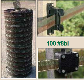 Neither the posts nor the gate are provided. Install the fence as a normal electric tape fence with 4 tensioners #9 at the gate and 2 tensioners per corner.
